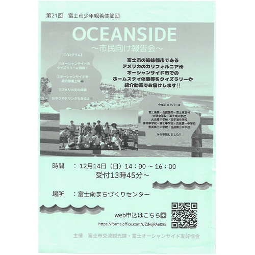 【12月14日】第21回姉妹都市オーシャンサイド市派遣富士市少年親善使節団市民向け報告会