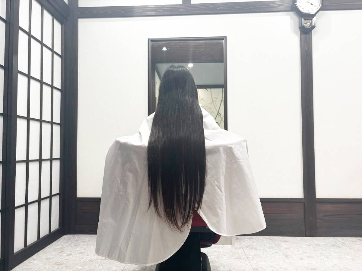 娘の場合、切りたい長さを測ると約50cm。条件をクリアしていることが分かり、安心して進めていただきました。