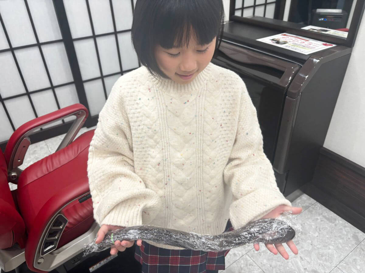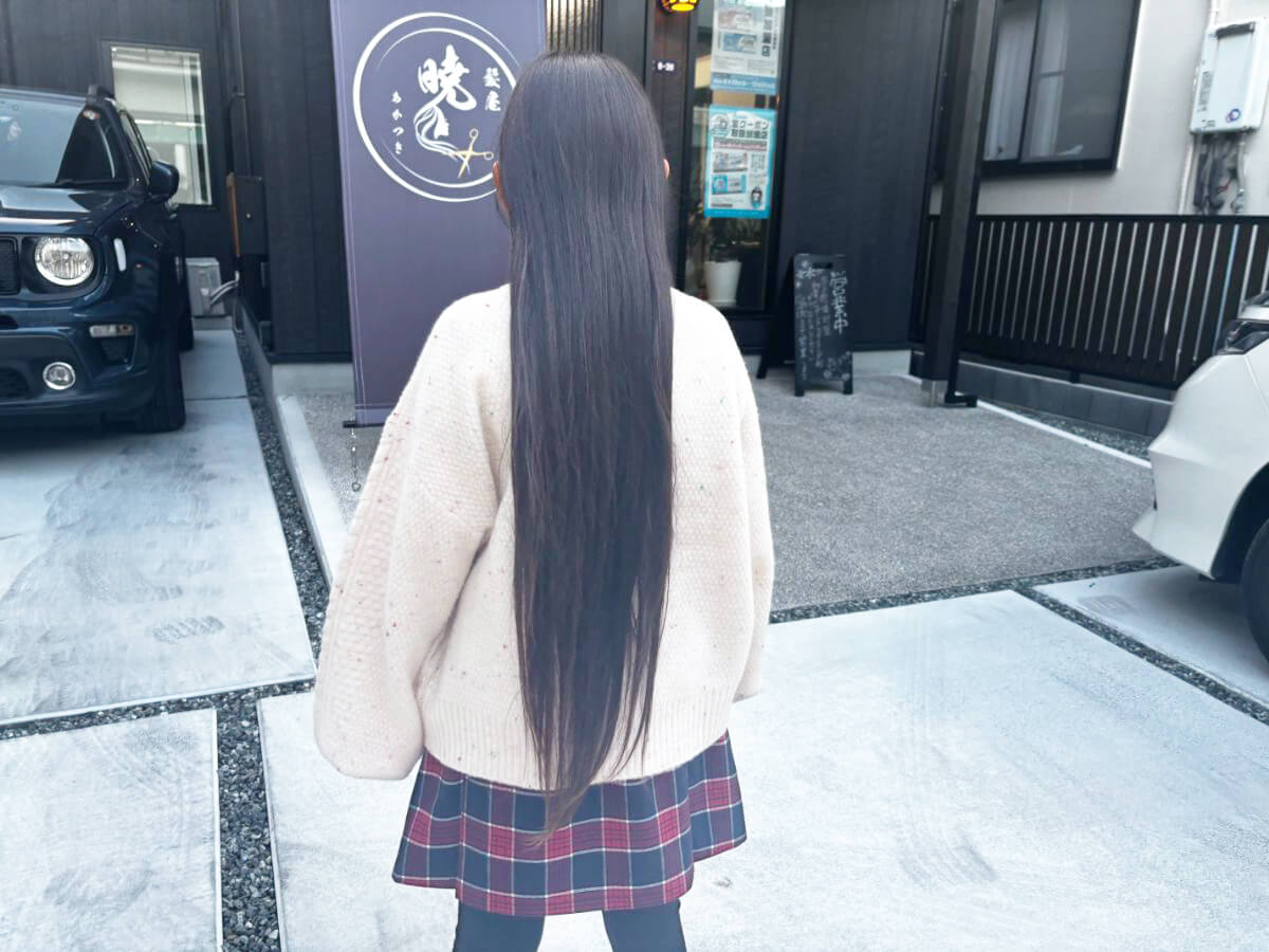 そして、小学3年生になった今。目標としていた長さに、ついに到達しました。「よくここまで伸ばしたね」そんな思いと一緒に迎えたのが、今回のヘアドネーション当日です。