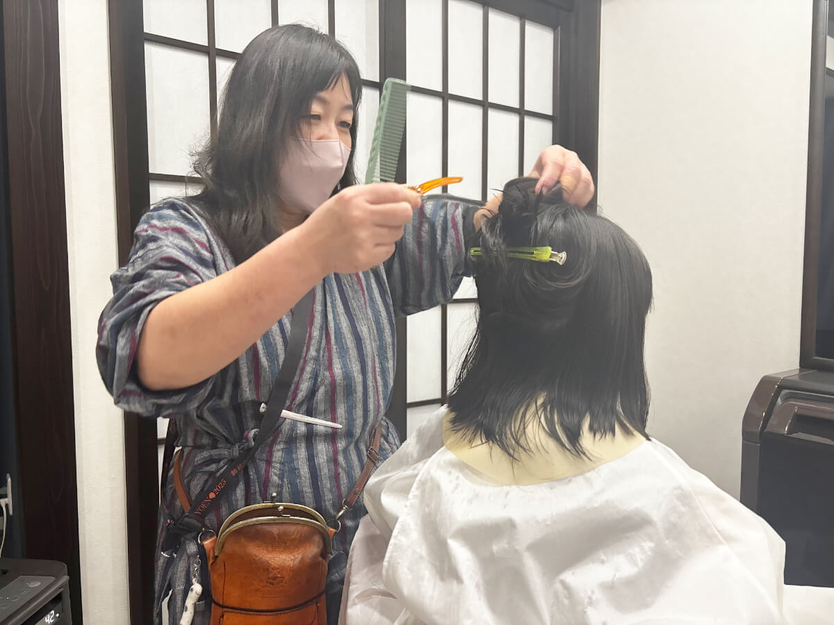 その後は通常のカットと同じ流れで仕上げへ。青柳さんが優しく声をかけてくださり、終始和やかな雰囲気でした。