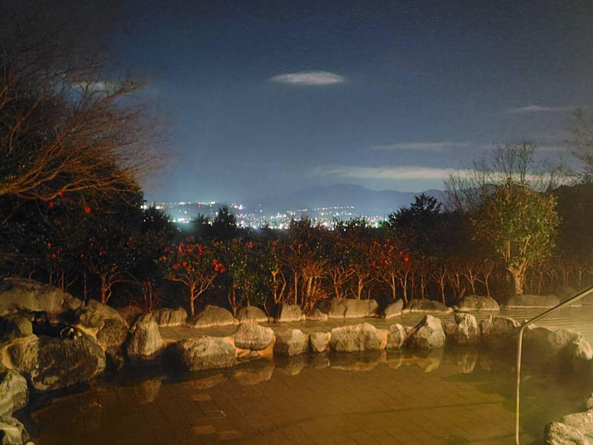 標高約500m超の高台に位置し、駿河湾をのぞみ伊豆半島まで見渡せる開放的な景色が楽しめます。薬草を配合した薬湯が人気です。
