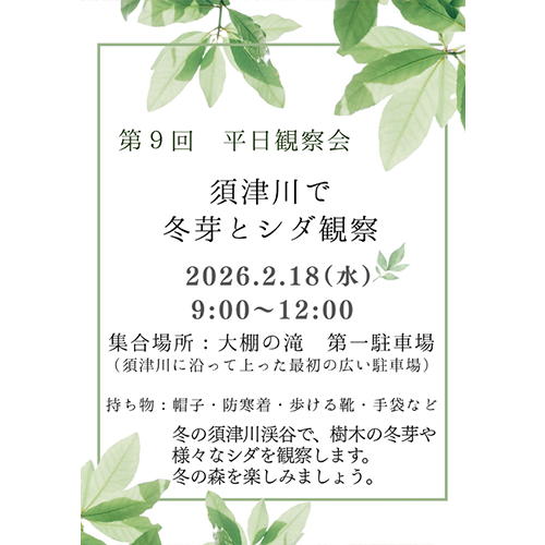 第9回 平日観察会【須津川で冬芽とシダ観察】