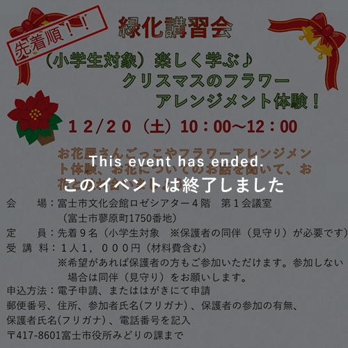 (小学生対象)楽しく学ぶ♪クリスマスのフラワーアレンジメント体験!