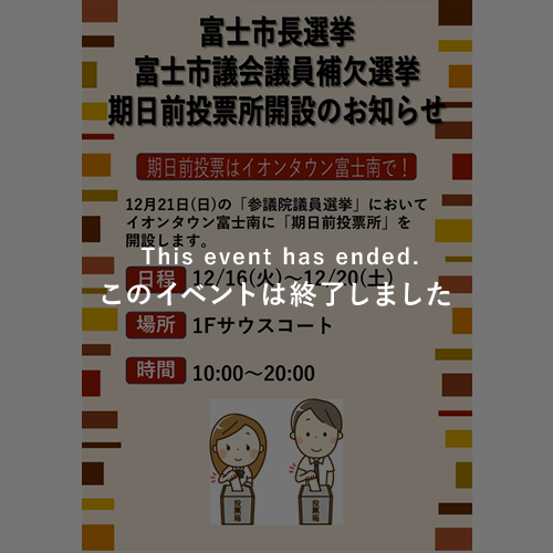 富士市長選挙 富士市議会議員補欠選挙 期日前投票所開設のお知らせ