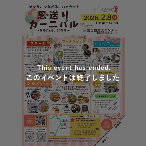 富士宮市で開催されるめぐる、つながる、ハハラッチ恩送りカーニバル〜ありがとう、10周年〜