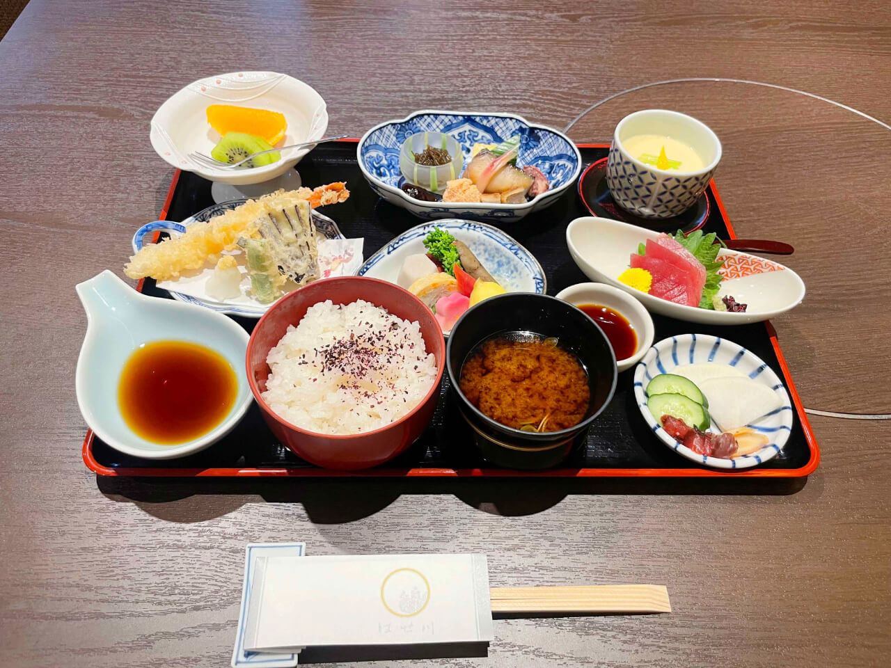 法事や特別な日に利用されることが多い同店ですが、実は、知る人ぞ知る、「平日限定ランチ」があります。季節の食材を使ったバランスの良い本格的な和食の昼の御膳。お刺身、焼き物、煮物に天ぷら、デザートまでついた大満足のランチ御膳です。